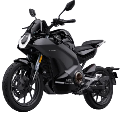 La Vmoto Stash est une moto électrique orientée haut de gamme. Plus imposante que les Super Soco TC et TS, elle propose une motorisation de 15 kW Max pour un couple de 150 Nm. Le moteur central permet une conduite sans nuisance sonore et ne nécessite qu'un entretien minimal.