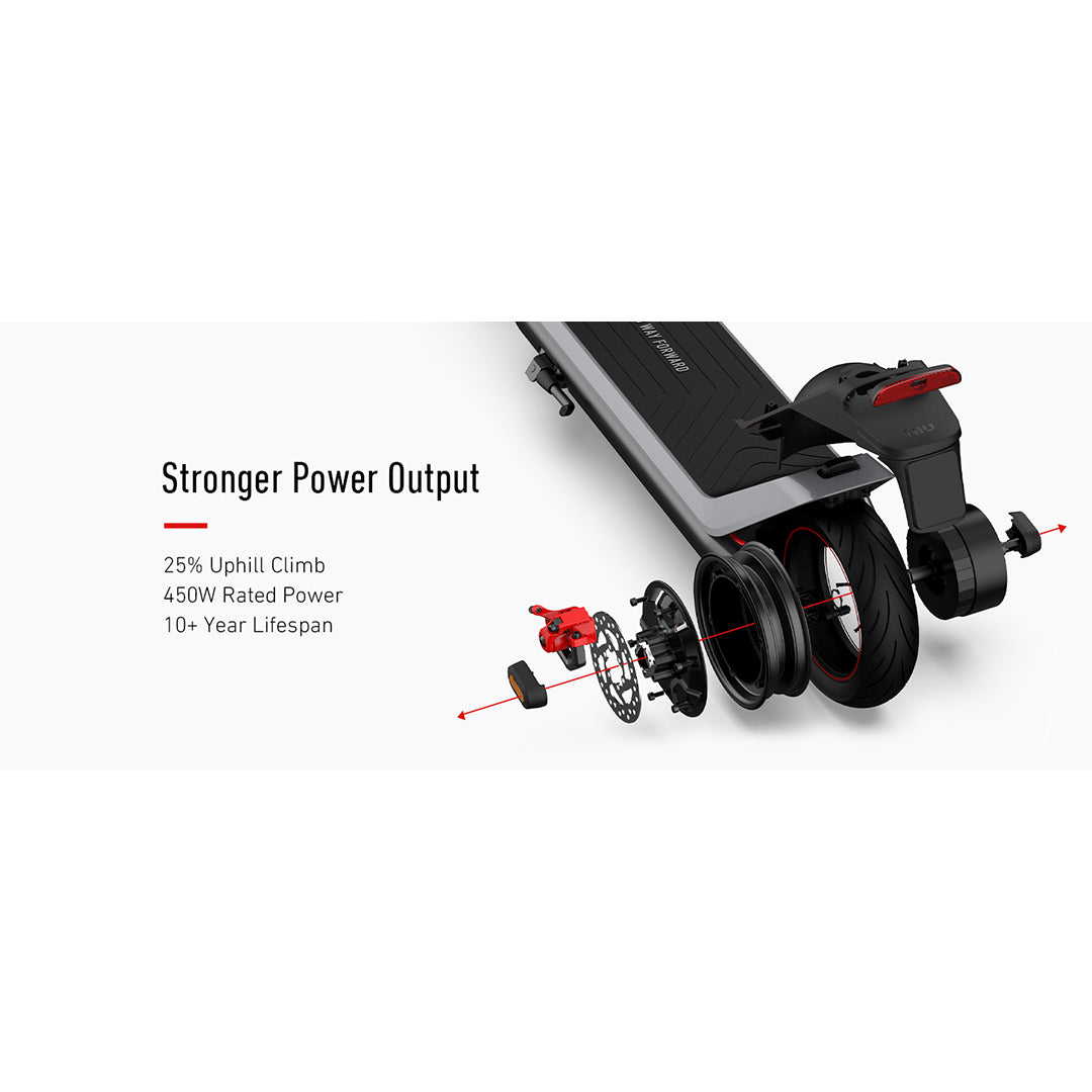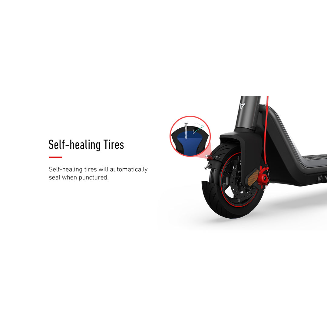 La trottinette électrique NIU pour adultes offre une expérience de conduite plus confortable et plus stable avec un guidon 25 % plus large (47,3 '' H * 21,3 ''W), un pont 13 % plus large (6,7 W * 23,6 '' L) et des roues 30 % plus larges (3 '') que les autres trottinettes pour adultes, supporte une charge maximale de 118 Kg (260 livres), ainsi que des pneus tubeless en caoutchouc auto-cicatrisant de  24 x 6,35 cm (9,5 x 2,5 pouces) pour une meilleure absorption des chocs.