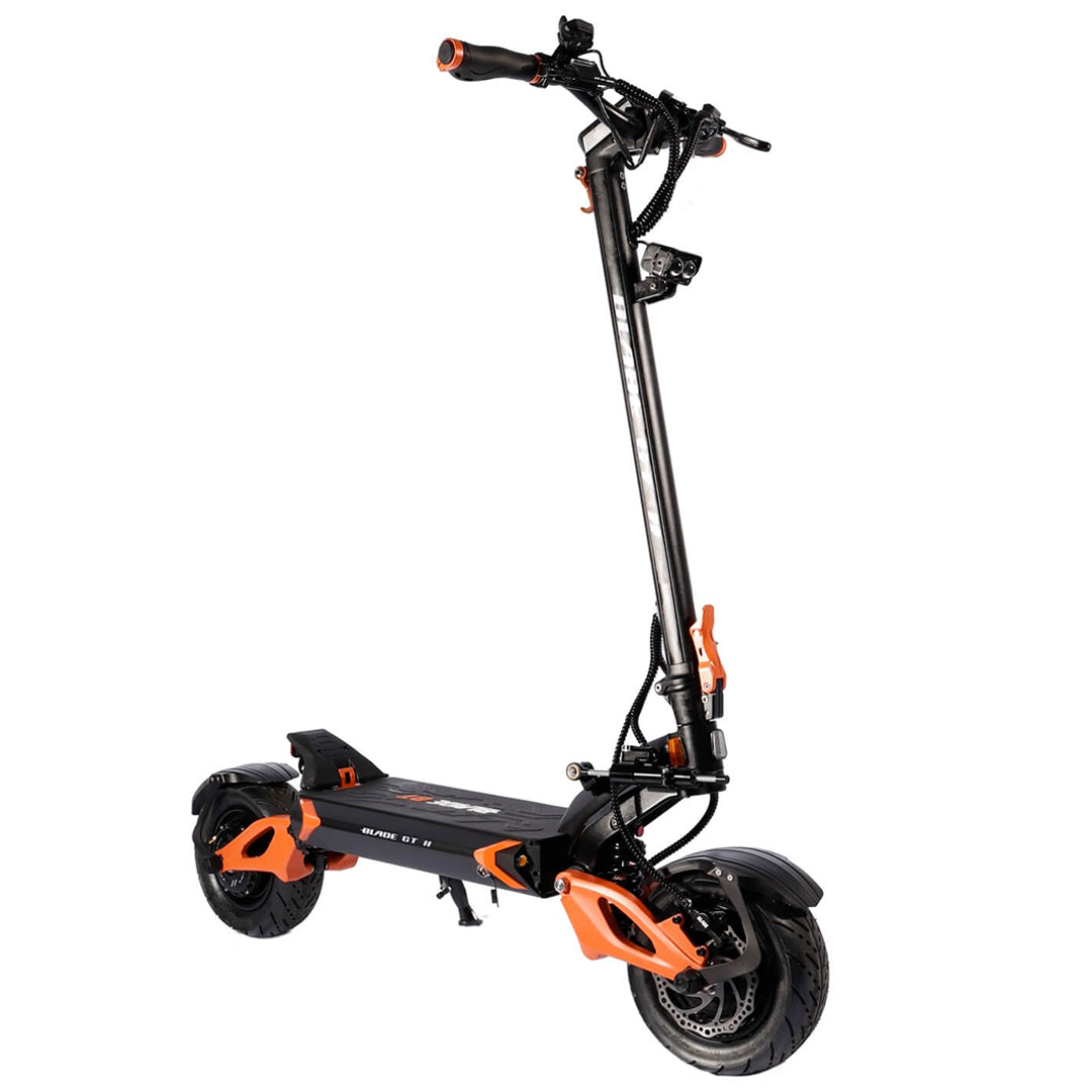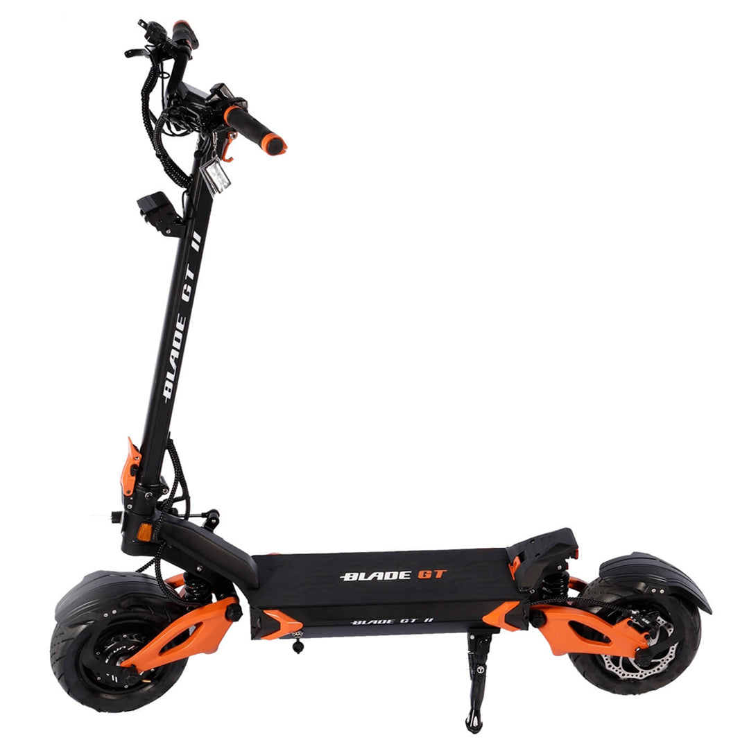 La Blade GT II est la prochaine génération de Blade GT, et l’améliore à bien des égards. Elle utilise la même suspension fantastique, l’amortisseur de direction de haute qualité, la béquille usinée CNC robuste, les deux freins hydrauliques avec des disques de 160 mm et l’accélérateur à doigts, mais tout le reste est nouveau ou amélioré, y compris un nouveau style audacieux. Il en va de même pour la construction solide et les composants de haute qualité, ce qui lui confère un excellent rapport qualité-prix et une grande valeur globale par rapport aux scooters concurrents similaires.