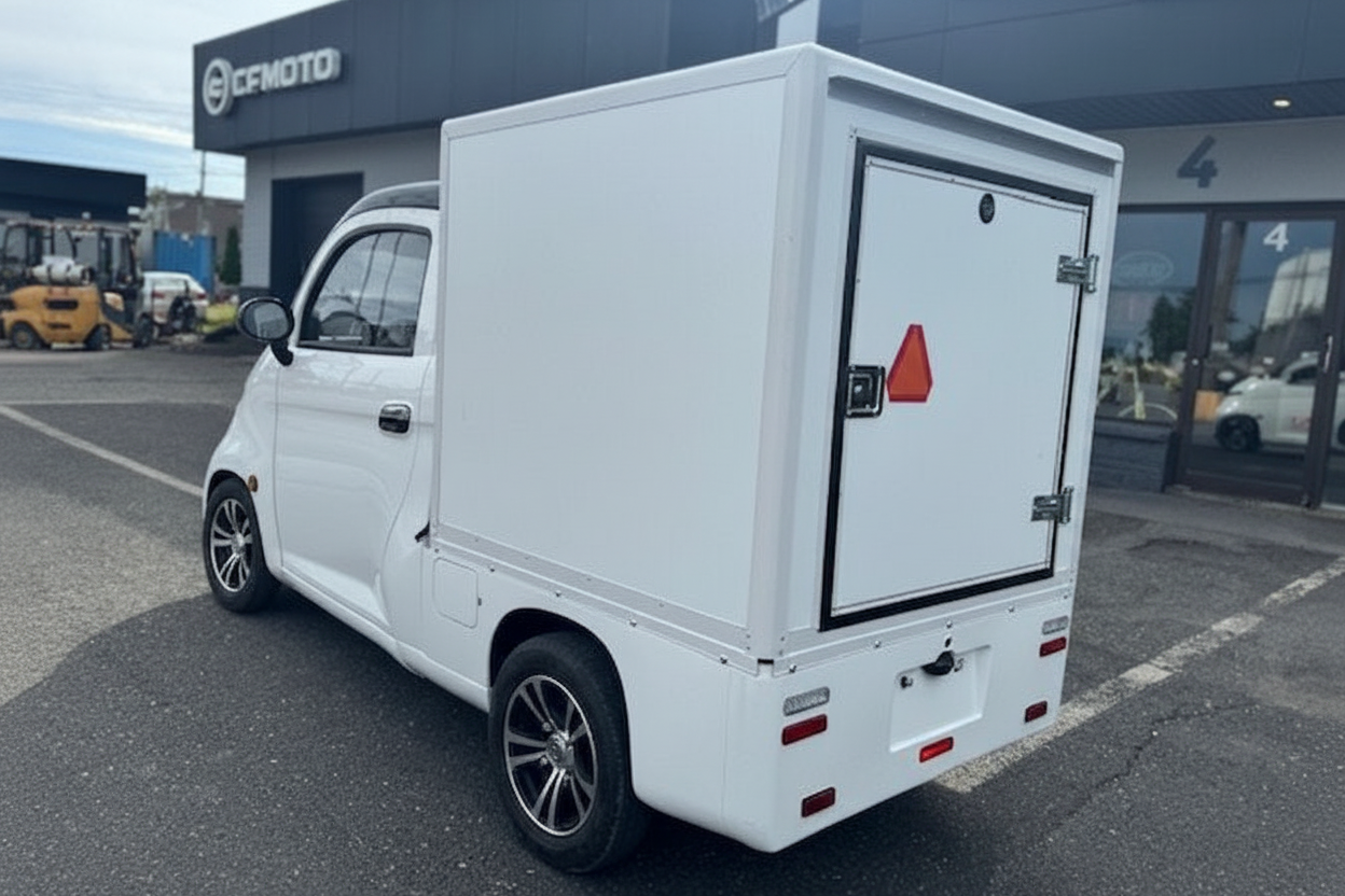 Une autonomie de batterie plus large allant jusqu’à 100 Km par charge, des systèmes de freinage plus grands et une carrosserie plus grande pour plus d’espace. Il est équipé de vitres électriques, de serrures électriques, de climatisation (En option), de chauffage et d’un design moderne. Choisissez entre un volant ou un guidon pour plus de flexibilité.