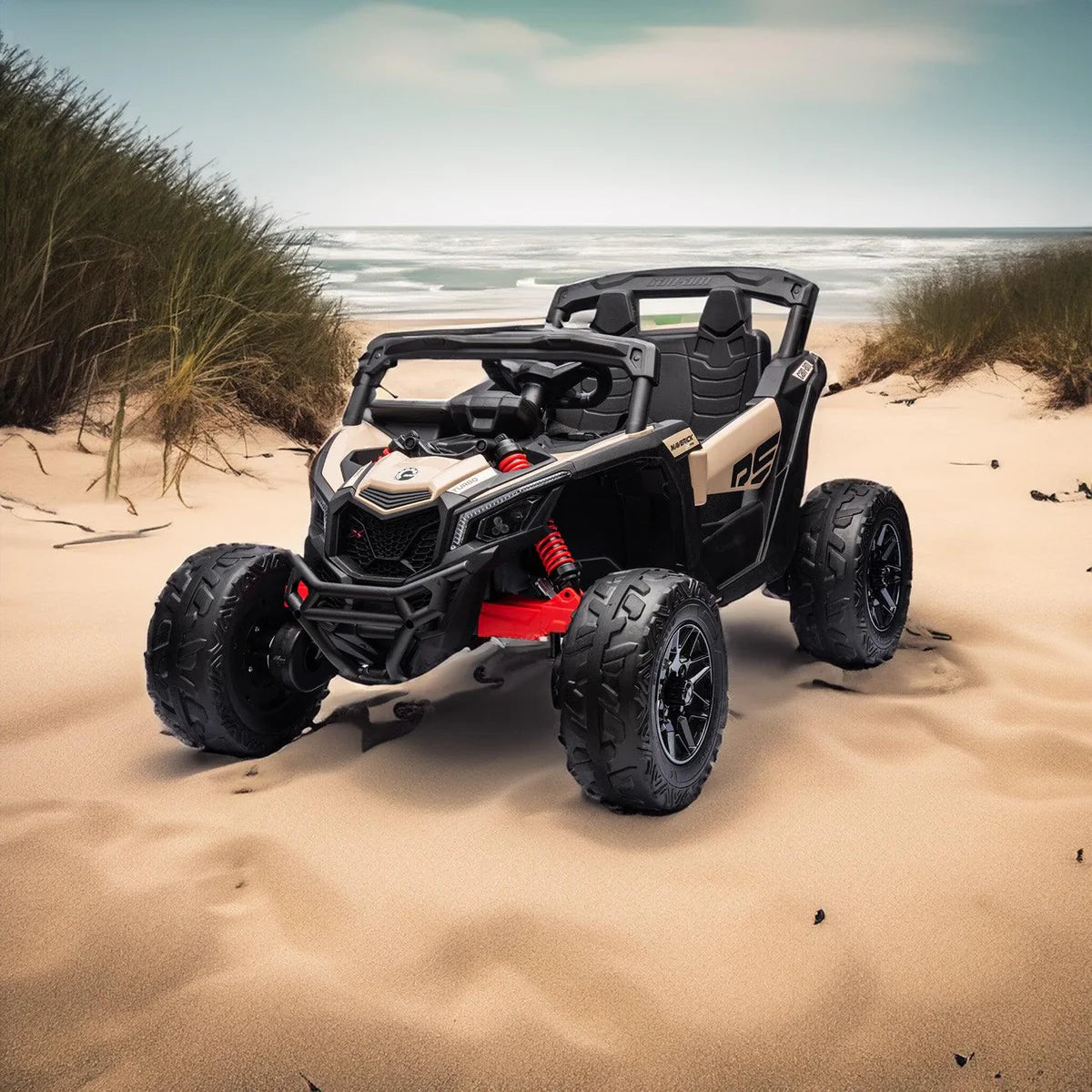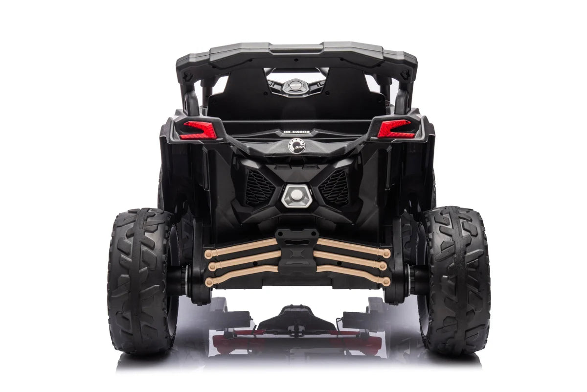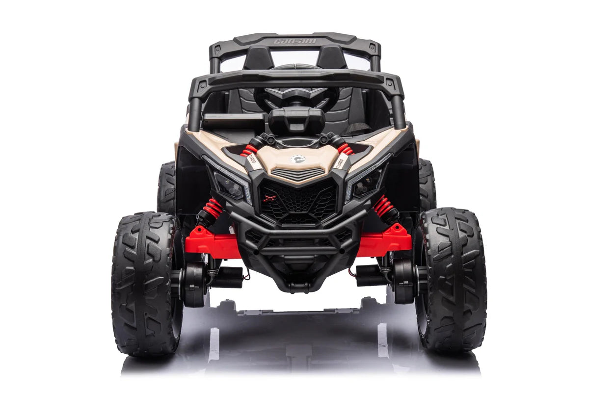 Né avec le cœur et l’esprit d’un animal. Le volume et l’accélération de cette version (24 Volts) Solo du Can-Am Maverick sont tous deux montés au maximum. La musique peut être lue via le système audio de la voiture, ou via une Clé USB, une Carte SD ou un Lecteur MP3, Bluetooth.