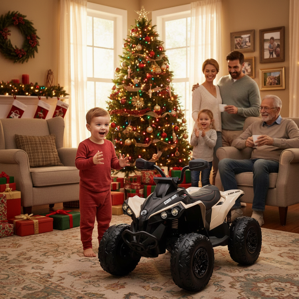 Embarquez pour une aventure palpitante en plein air avec le VTT Can Am Renegade (24 Volts) pour les enfants âgés de 3 à 7 Ans. Ce VTT sous licence officielle Can Am est livré avec une batterie robuste de (24 Volts) et quatre moteurs de (200 Watts) permettant une vitesse de pointe de 8 Km/h (5 Mph) pour 45 Min-1h  de plaisir continu.