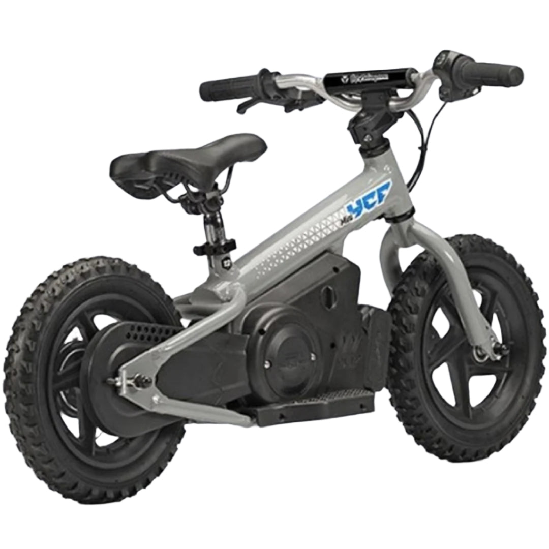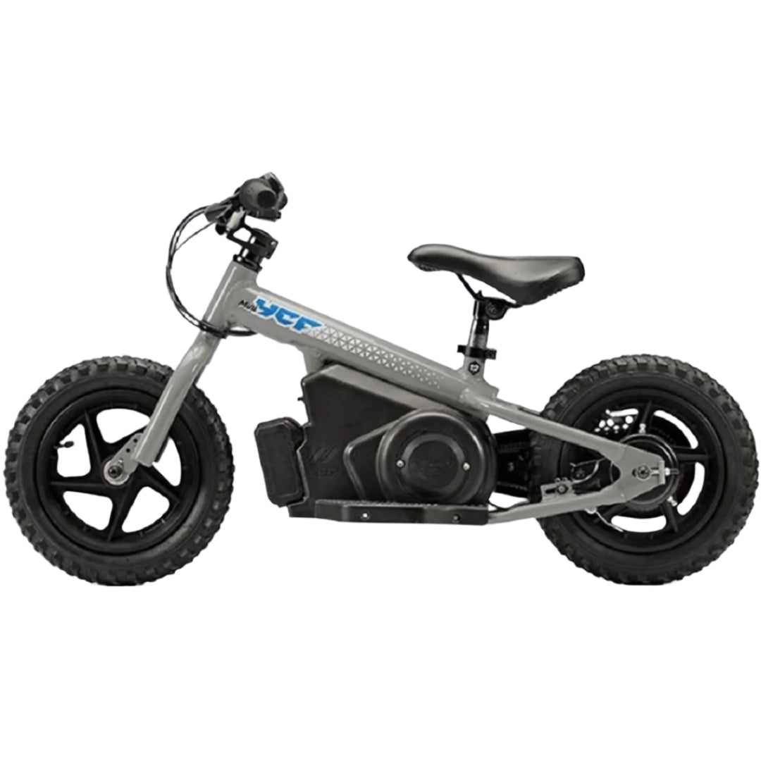 Le Mini YCF 12 est un vélo électrique conçu spécialement pour les enfants, équipé d’un moteur de (170 Watts) alimenté par 2 batteries au lithium de (24 Volts) (2,6Ah) facilement détachable, comme sur une ''drill''. La 2ème batterie est incluse pour en prolonger l'usage.