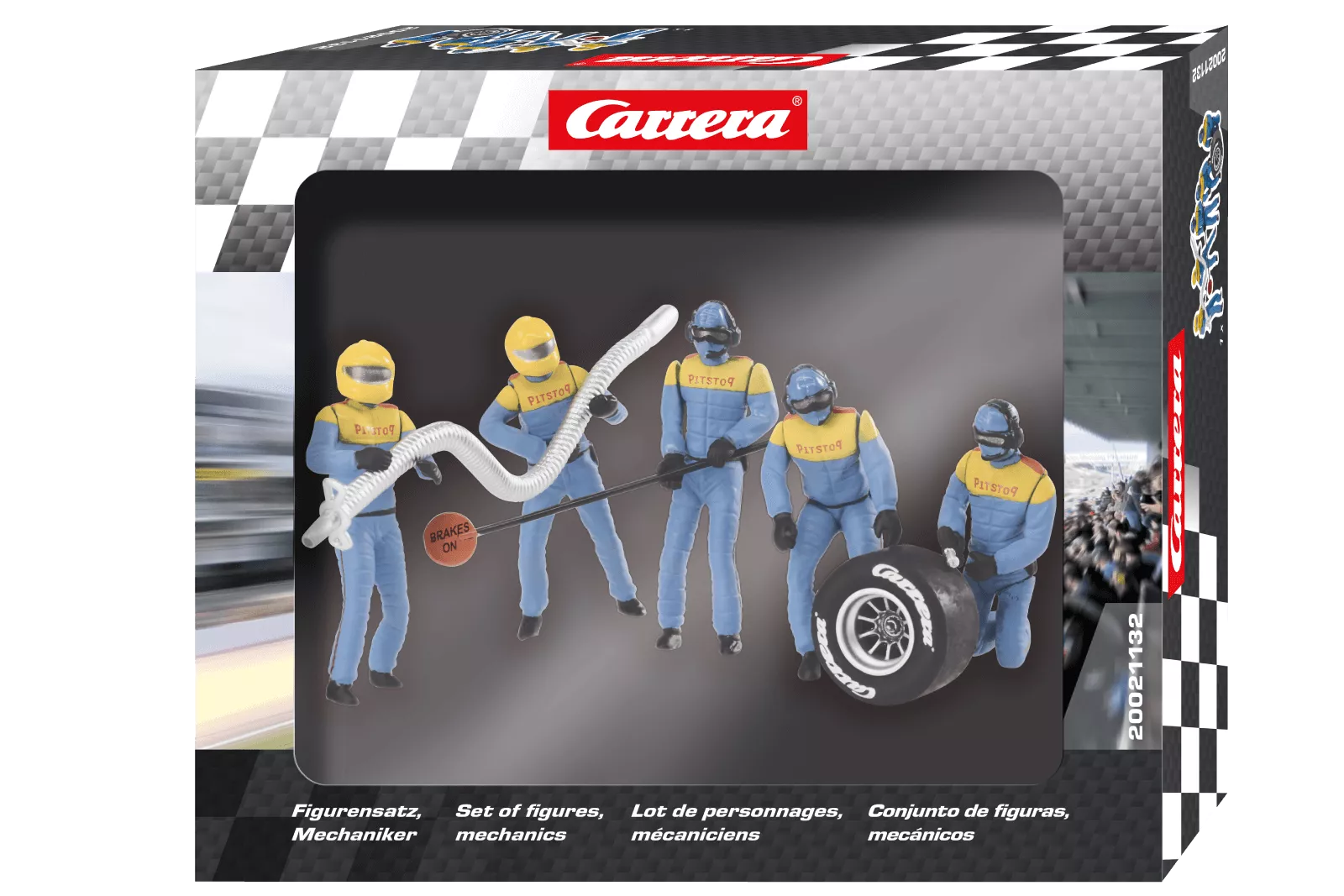 Carrera's team of mechanics consists of five figures in blue outfits. In addition to a careful workmanship, the modern figures also convince with their various body parts, which can be positioned or rotated. The mechanics have an excellent figure and perfectly complement your Carrera track.