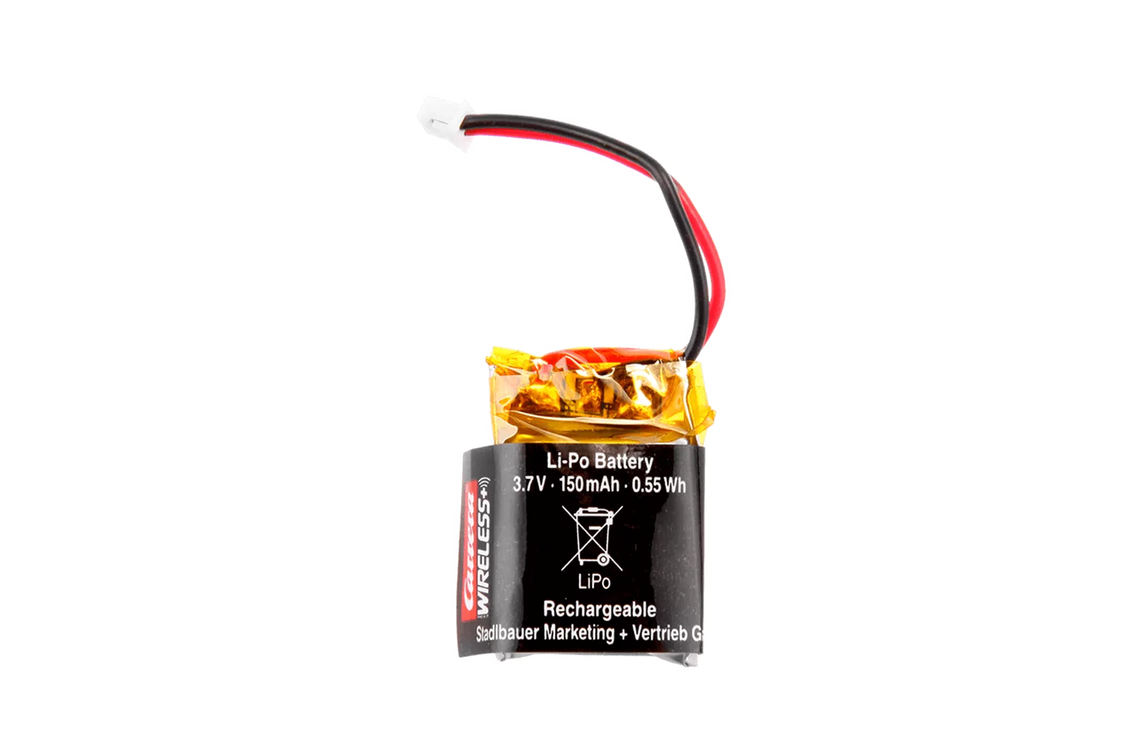 With this replacement battery, you can get your WIRELESS+ cruise control back on track. The LiPo battery is intended exclusively for the use of the WIRELESS+ cruise control used on the Carrera Digital 124, Carrera Digital 132, Carrera Digital 143 and Carrera EVOLUTION circuits. If it becomes necessary to replace the old battery, this product gives you a powerful reserve of power for the 2.4 GHz controller, which will allow you to play for up to eight hours continuously when fully charged. charge.