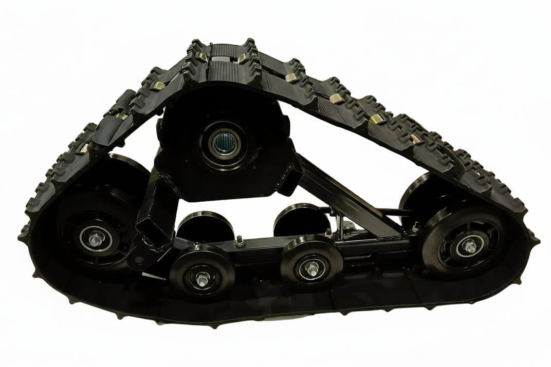 L'installation de chenilles modifie le comportement du véhicule. Usage recommandé sur neige damée ou poudreuse légère. Évitez l'asphalte et les rochers pour préserver les patins en caoutchouc.