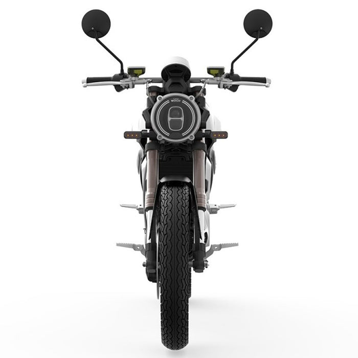 Le phare est incorporé dans un élégant boîtier de style rétro. Six modules LED sont utilisés en combinaison pour les feux de route et les feux de croisement. Ceux-ci fournissent un éclairage plus lumineux et plus efficace que les capacités équivalentes d’un phare halogène. Plus de 8000 lumens sont concentrés dans un faisceau de 35 degrés en mode faisceau élevé. Les clignotants LED avant et arrière sont à 40 cm les uns des autres qui rendent ce vélo conforme comme moto